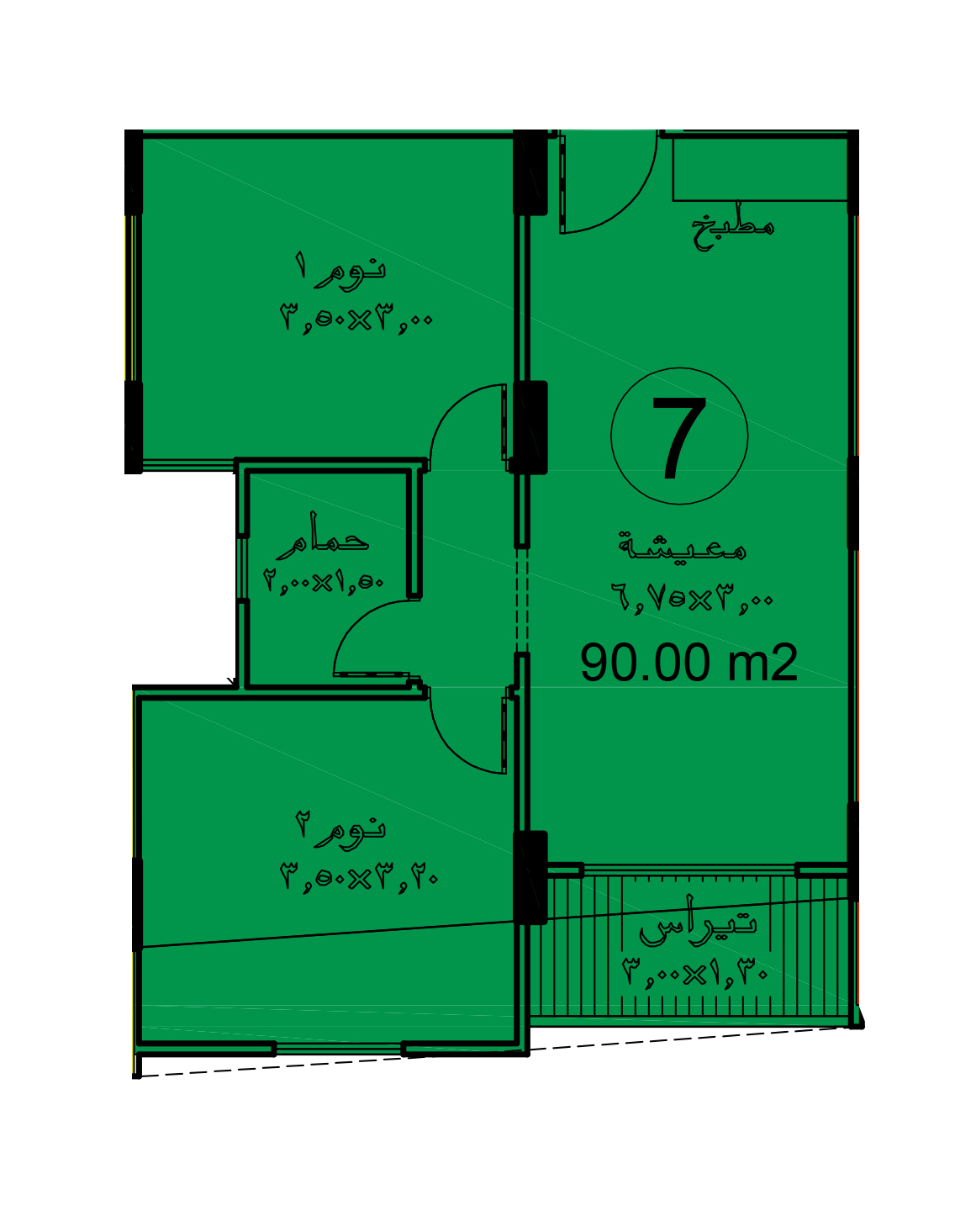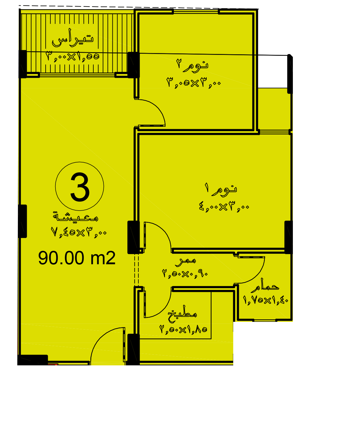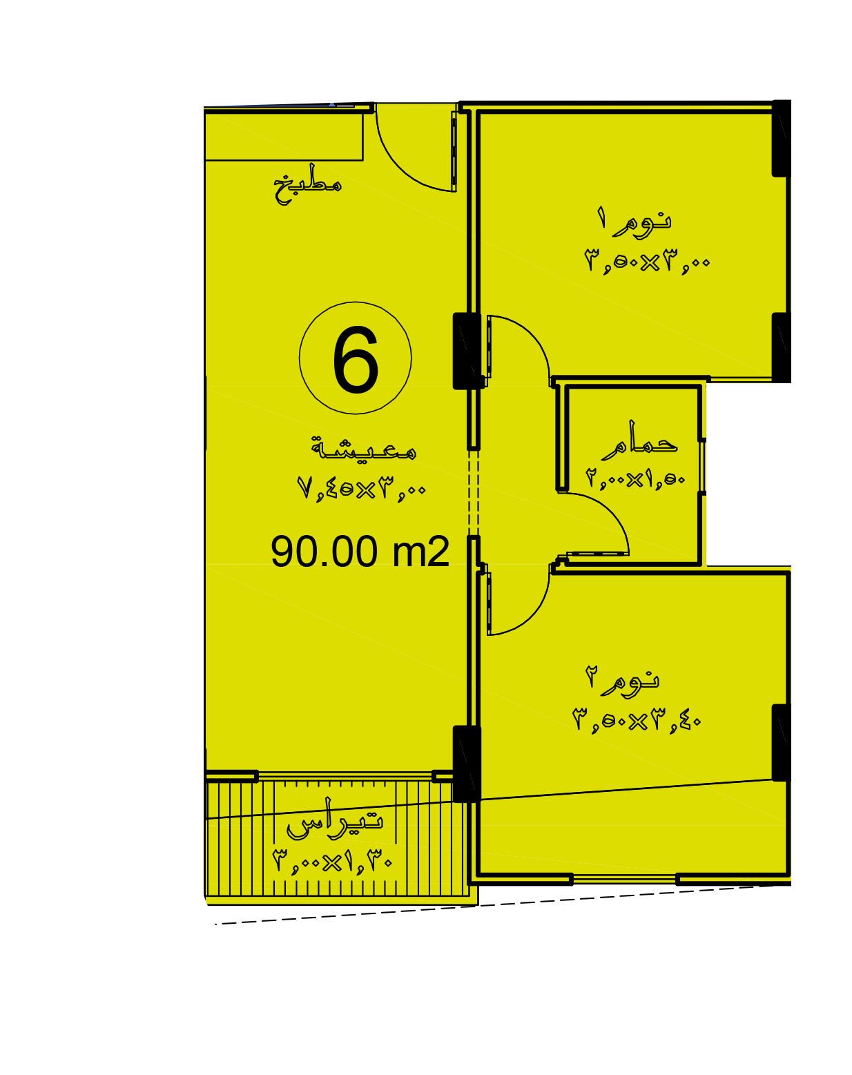 مساحة الوحدة : 90 م²