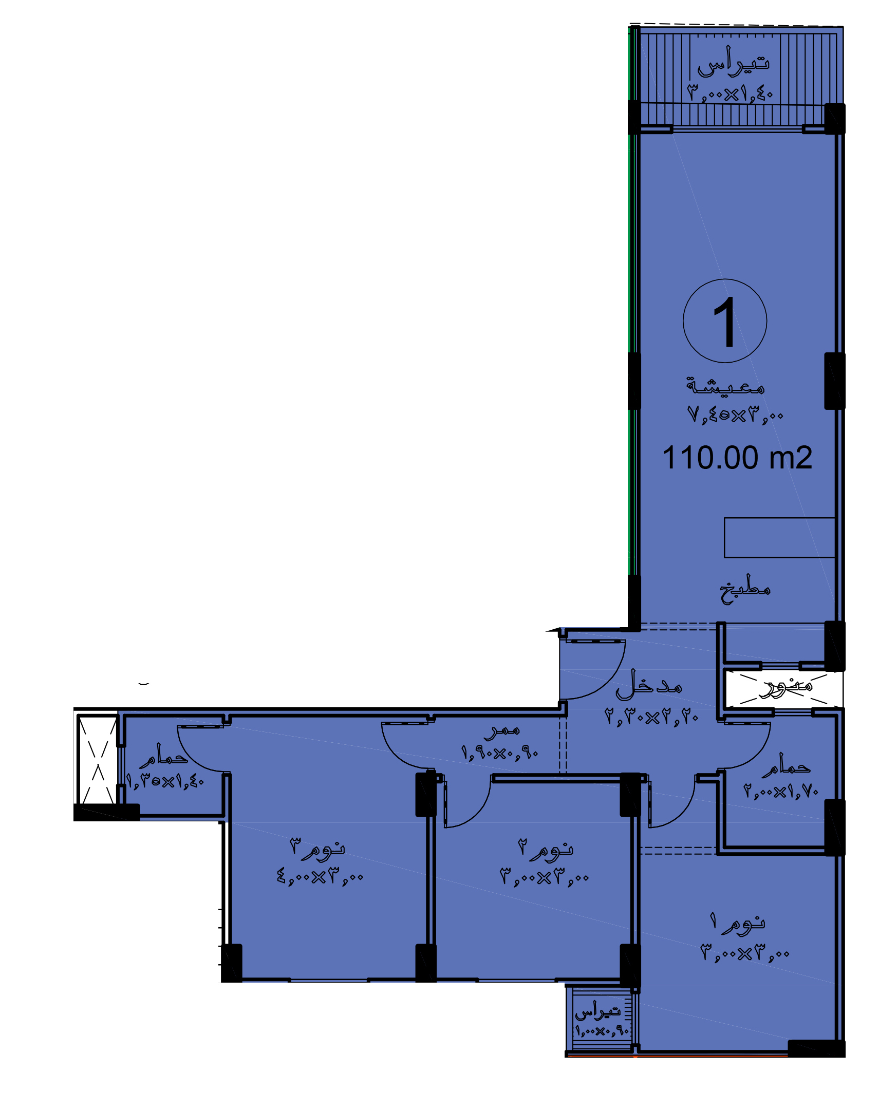 مساحة الوحدة : 110 م²