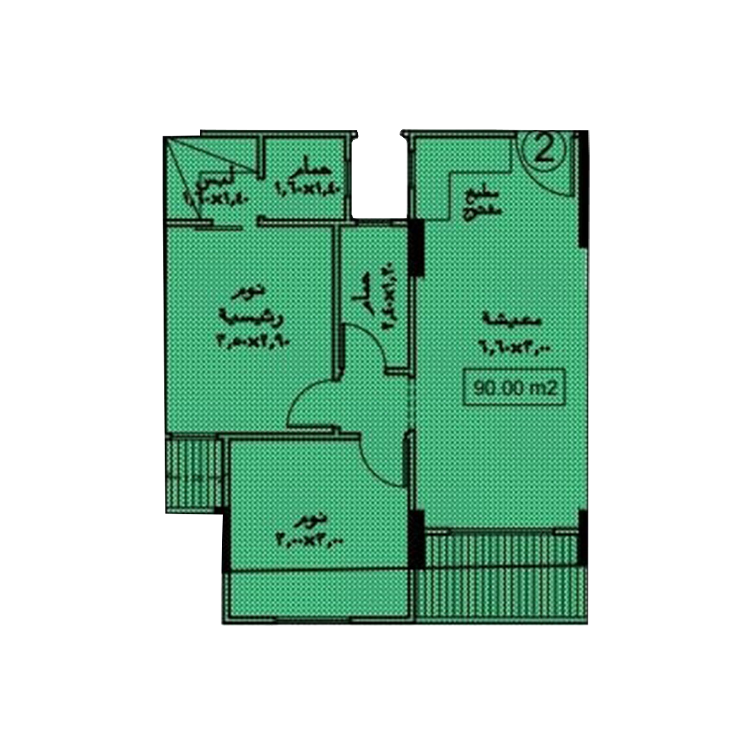 مساحة الوحدة : 90 م²