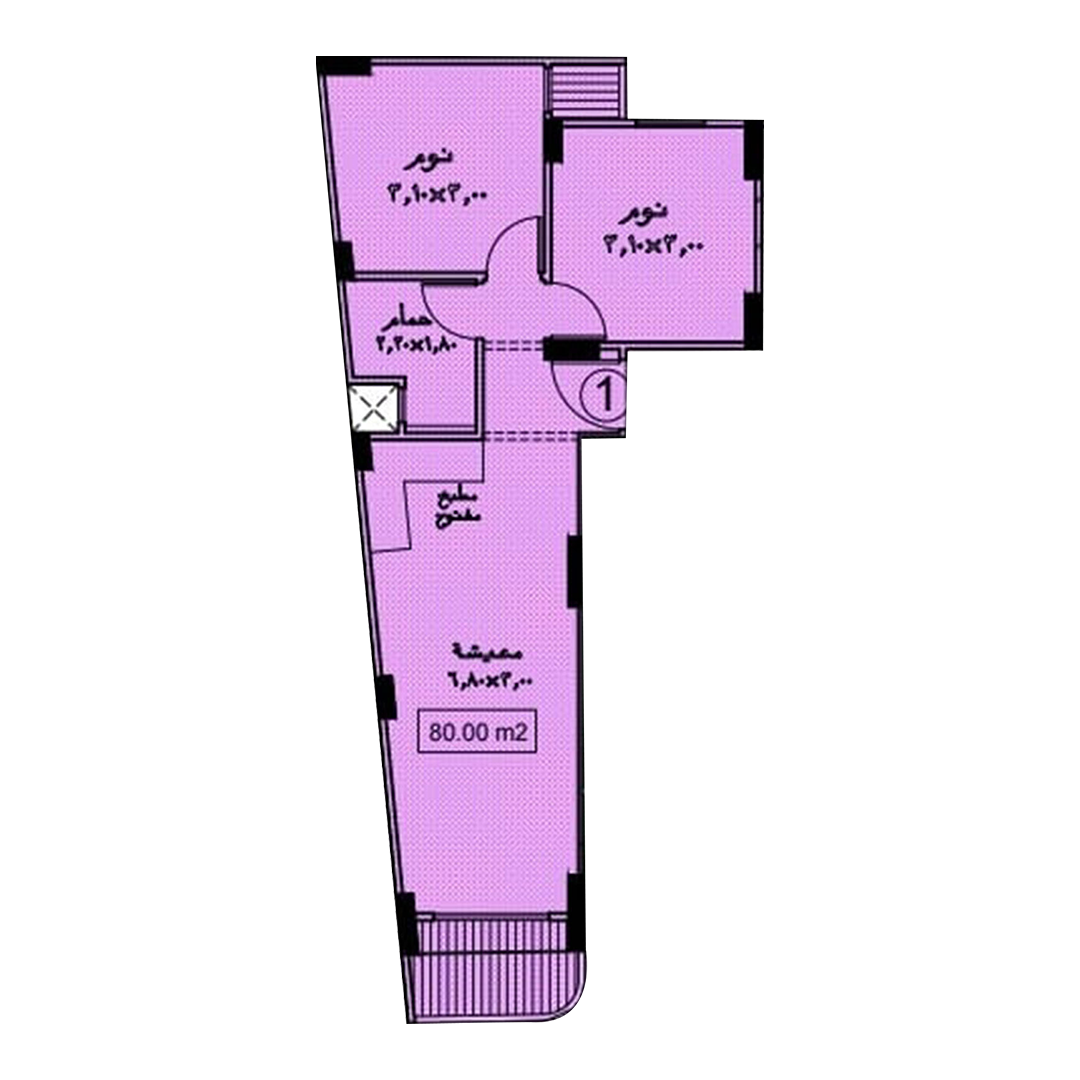 مساحة الوحدة : 80 م²